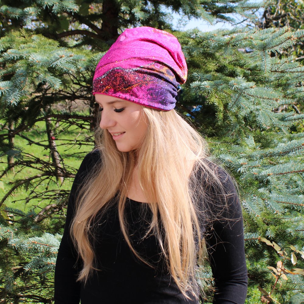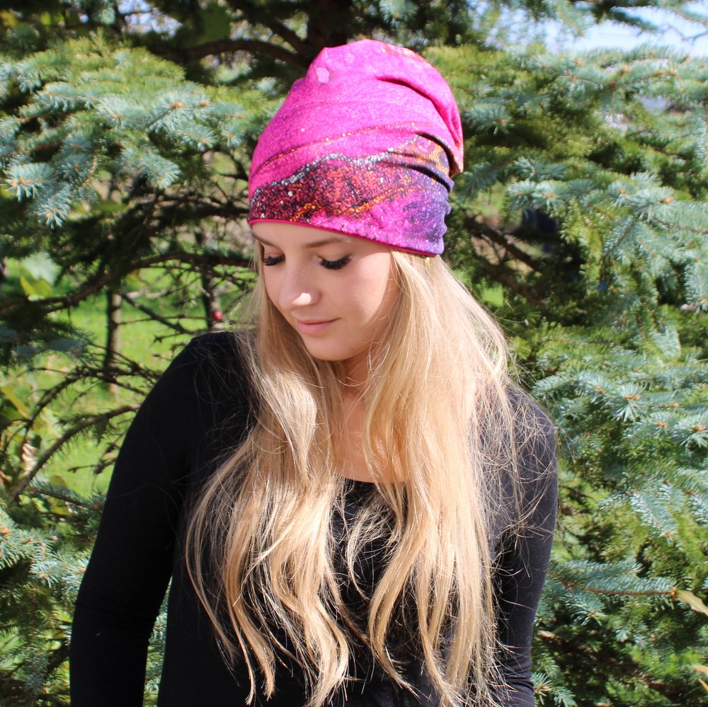 Dvostranska kapa – Abstraktno barvita/ciklamna