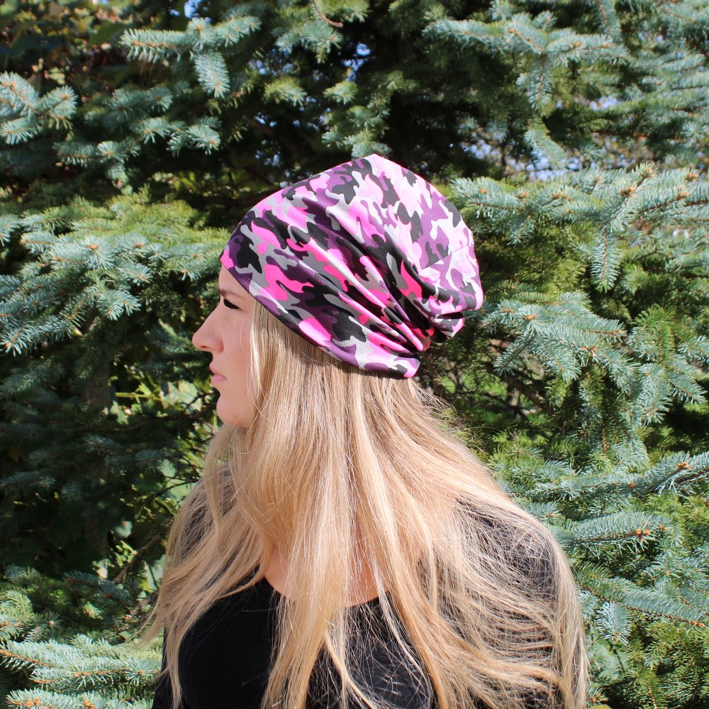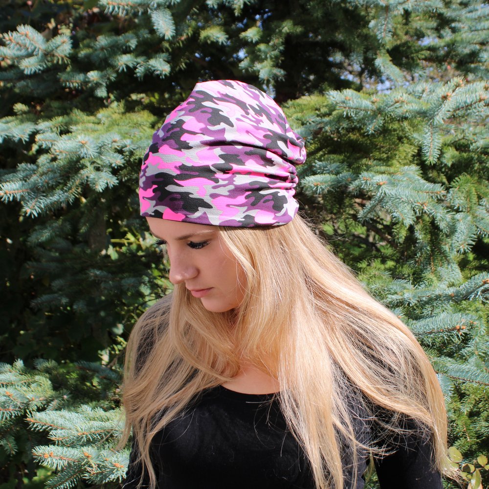 Dvostranska kapa – Maskirna roza, vijola, črna/črna