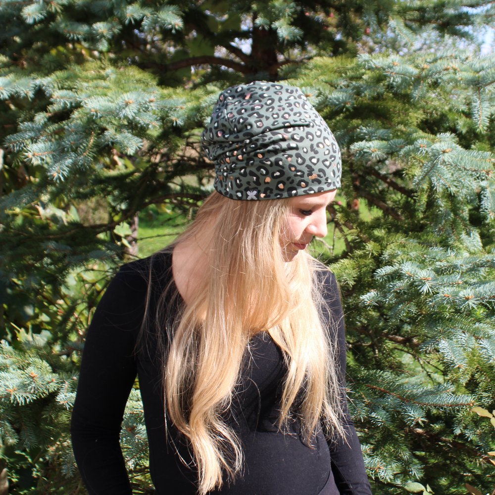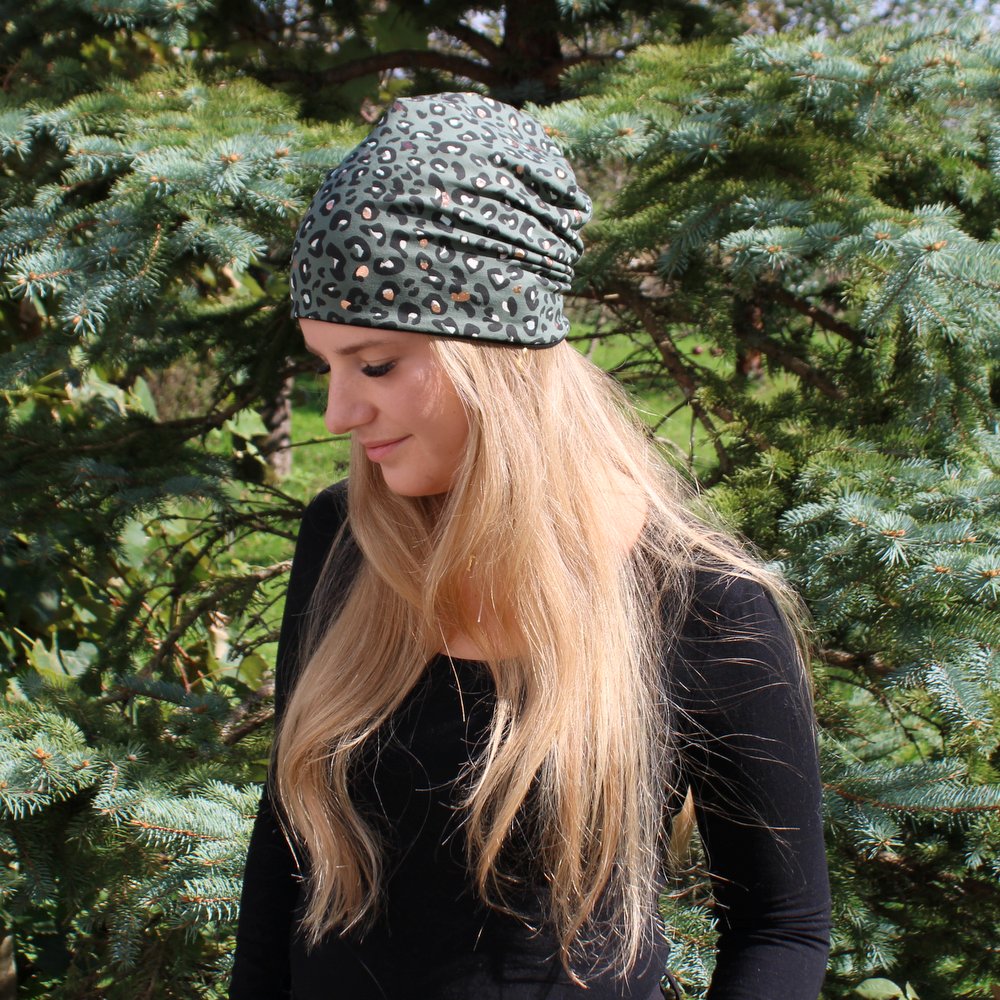 Dvostranska kapa – Zelena z gepard potiskom/črna