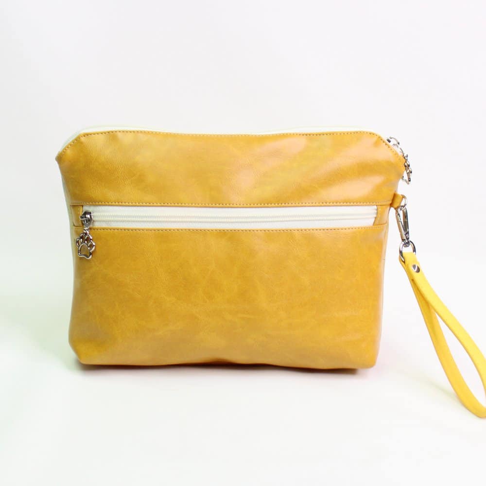 Notranjost je podložena z barvito in igrivo tkanino, ki doda torbici še več živahnosti. Zaradi svoje prostornosti in praktične razporeditve je odlična za shranjevanje kozmetike, toaletnih pripomočkov ali kot unikatna spremljevalka na potovanju.