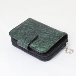 Majhna unikatna denarnica, ki s svojo pisano podobo (zunaj in znotraj) prepriča tudi najbolj zahtevne uporabnice. Zaradi praktične velikosti paše v vsako torbico. V celoti se zapira z zadrgo, v notranjosti pa skriva 8 predalčkov za kartice in predalček na zadrgo za kovančke. Zelo prav pride tudi kot dodatna denarnica na potovanjih, ko je potrebno imeti ločeno tujo valuto, ko s seboj nosimo samo žepnino in seveda je lahko tudi prva prava denarnica za vašega otroka. Lahko je čudovito darilo. Njena velikost je 10cm x 11cm x 2cm. Narejena je iz umetnega usnja. Ker je unikatna je ena in edina in neponovljiva.