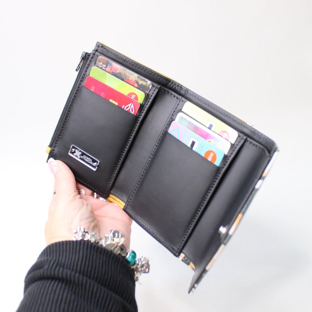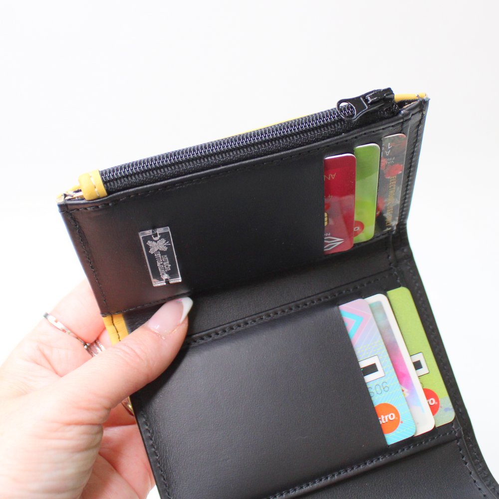 Ta unikatna denarnica (12 × 9 × 2 cm) je popolna izbira za vse, ki želite združiti praktičnost in stil. Njena posebnost je izjemna razporeditev, ki omogoča, da je majhna za vsak žep ali torbico, a hkrati ponuja funkcionalnost velikih denarnic.